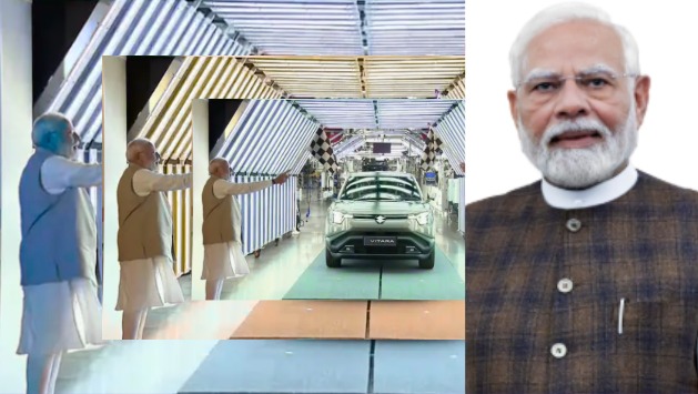सबहेड: पीएम मोदी ने अहमदाबाद के हंसलपुर प्लांट से e-Vitara को हरी झंडी दिखायीं; गुजरात प्लांट 10 लाख यूनिट/वर्ष की